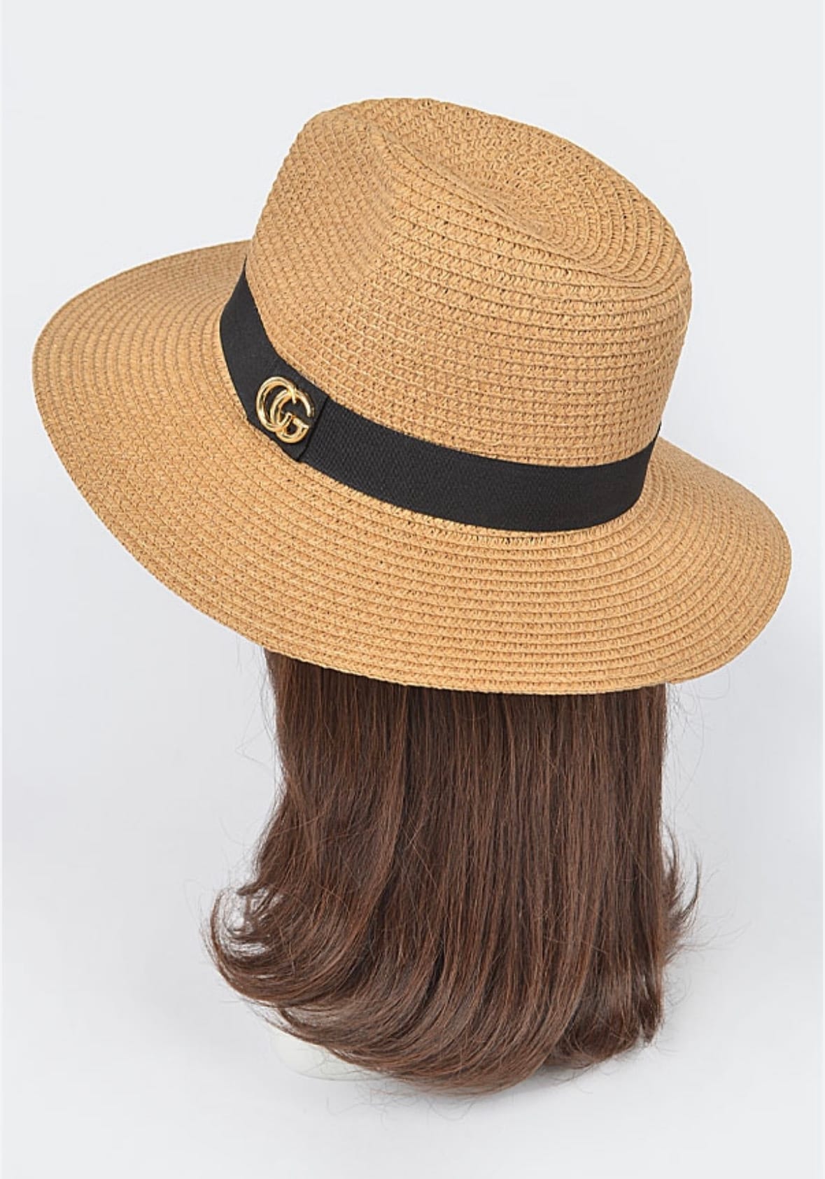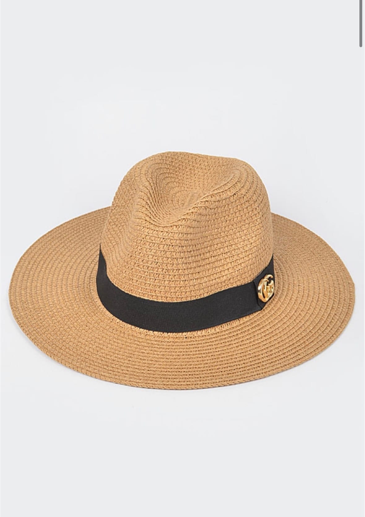 Faux Straw Fedora Hat. The hat is adjustable with the string inside.